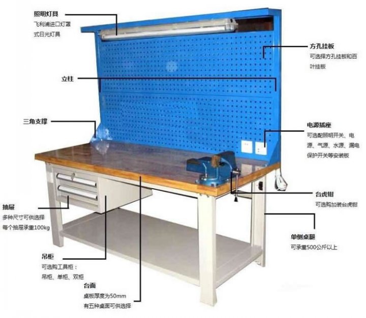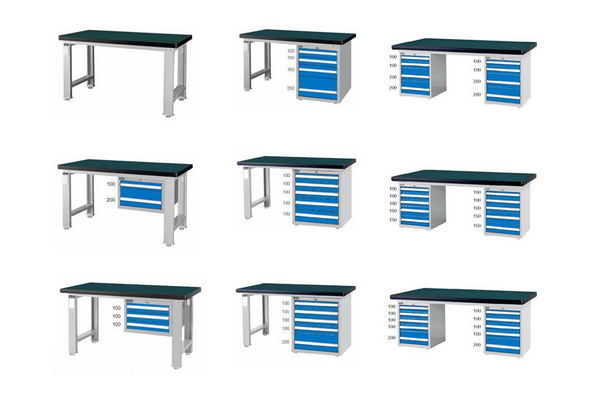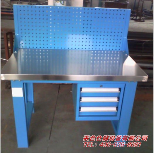 工作台材质采用优质冷轧钢板,表面采用静电喷涂处理而制成,坚固的工作桌框架,牢固平稳,可使工作桌台面均匀承重达到1000kg。桌面有多重材质组成,适用于各行业办公场所。可配合工具柜,吊柜,挂板,单开门柜使用。抽屉、承办承重大,性能好,抽屉里可根据需求配置分隔条。